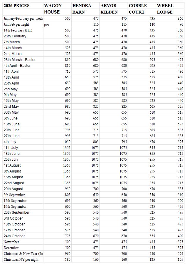 To check availability and to book any of the self catering cottages, please contact us directly.
